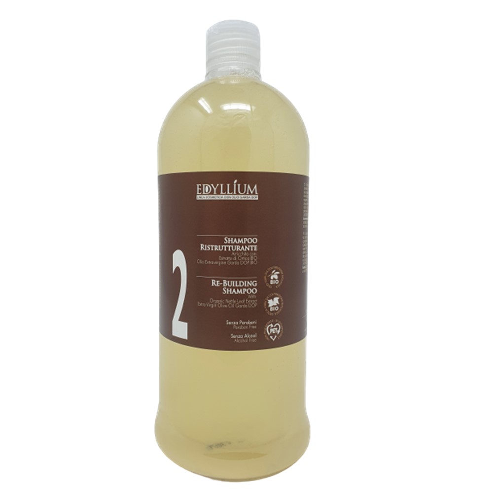 step 1 : DETERGENTE CUOIO CAPELLUTO 100 ml. Molti problemi hanno la loro vera origine nel cuoio capelluto: lo Scalp Cleanser Edyllium deterge il cuoio capelluto in modo efficace ma delicato. E’ utile nei casi di eccessiva produzione di sebo: i capelli sono unti, si sporcano facilmente e tengono poco la piega. Grazie agli ingredienti naturali contenuti, lo Scalp Cleanser è inoltre un ottimo coadiuvante in caso di forfora e prurito. Il particolare meccanismo di detersione detossinante, unitamente a specifici ingredienti naturali, è in grado di favorire la fisiologica crescita dei capelli USO: Applicare un velo uniforme di prodotto sul cuoio capelluto asciutto. Massaggiare delicatamente e sciacquare bene. Procedere poi con lo shampoo Edyllium appropriatestep 2 :SHAMPOO RISTRUTTURANTE 250 ml. Regalate ai vostri capelli e al vostro cuoio capelluto un trattamento per la detersione rilassante e rigenerante. Il costante utilizzo di Edyllium shampoo con Olio di Oliva Garda Dop Bio e Estratto di Ortica Bio rigenera e rinvigorisce la capigliatura e la protegge dalle aggressioni quotidiane. L’azione detergente è delicata e studiata per rispettare la fibra capillare, in particolare le cuticole. USO: Applicare su capello bagnato. Massaggiare delicatamente e sciacquare bene. Procedere poi con il trattamento ristrutturante Edylliumstep 3:TRATTAMENTO RISTRUTTURANTE INTENSO 250 ml. Maschera ristrutturante intensa, adatta a tutti i tipi di capello ma particolarmente indicata in caso di fibra capillare sfruttata e sensibilizzata. L’azione ristrutturante è intensa e risulta durevole, grazie alla capacità di sigillare i fattori idratanti all’interno del capello. I benefici nutritivi e ridensificanti delle proteine della soia, fortificanti dell’estratto di ortica e antiossidanti, addolcenti e remineralizzanti dell’Olio di Oliva Garda dop, rendono i capelli vitali, voluminosi e brillanti. USO: Applicare dopo aver sciacquato lo shampoo Edyllium su capelli tamponati. Lasciare in posa 3-5 minuti. Sciacquare bene.step 4:ELISIR PROTETTIVO 250 ml. Trattamento leave-in Indispensabile per proteggere i capelli dalle aggressioni esterne: raggi solari UVA/UVB, smog, vento, umidità, sbalzi di temperatura e di umidità. Costituisce inoltre uno schermo utile per proteggere i capelli dagli effetti negativi di cloro e salsedine.L’effetto termoprotettivo è utile per preservare il capello quando si usa il phon per asciugare, la piastra per stirare, o il ferro per arricciare.La sinergia con gli altri prodotti del rituale capelli Edyllium permette di preservare l’idratazione all’interno del capello, che appare lucido, elastico e facile da pettinare USO: Distribuire il prodotto uniformemente su capello tamponato, non risciaquare, procedere con l’asciugatura