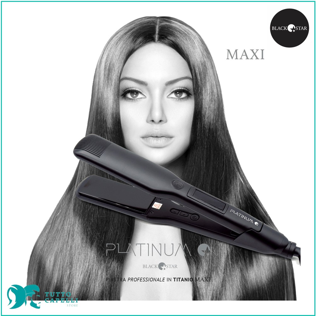 BLACKSTAR Platinum Piastra Capelli Maxi, è una piastra professionale con placche in Titanio larghe, ideale per i capelli lunghi e voluminosi.