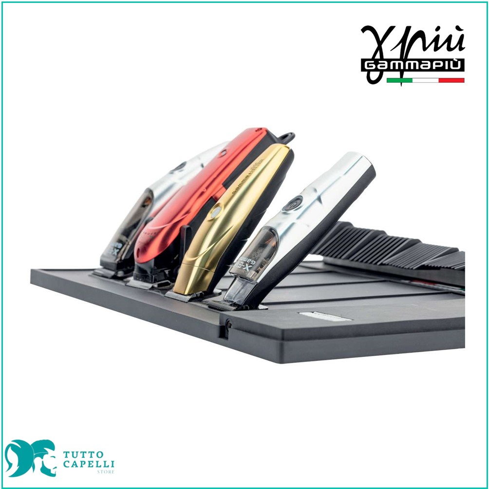 La striscia magnetica mantiene saldamente clipper o trimmer in posizione verticale per ottimizzare lo spazio.